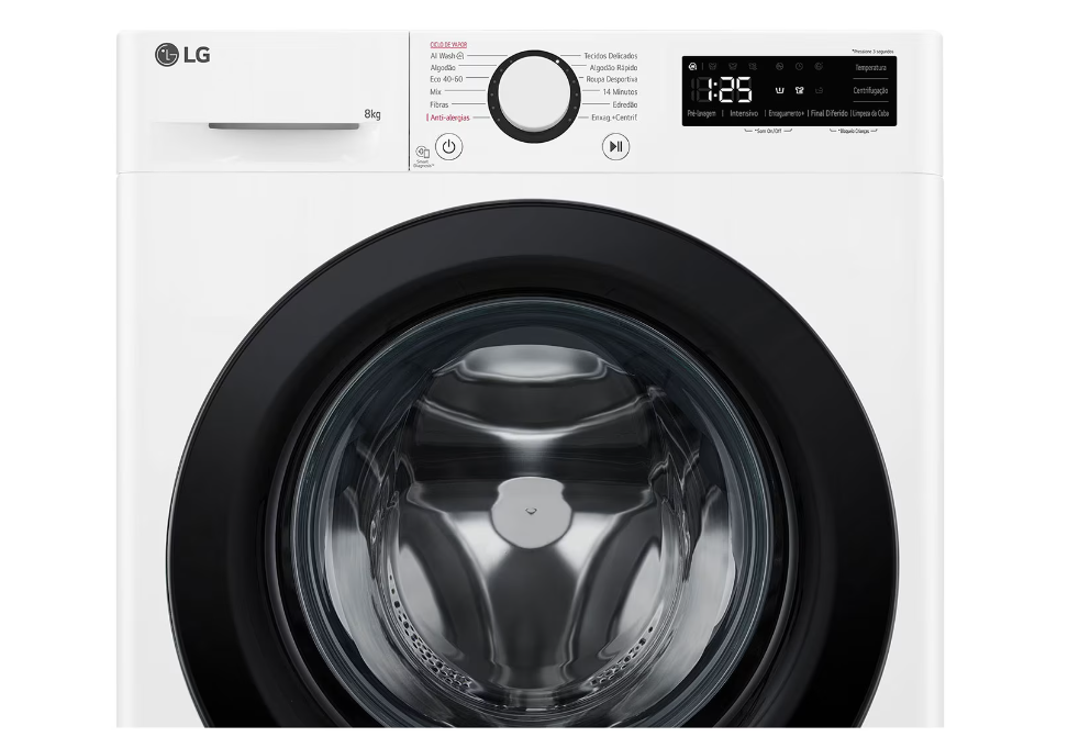 Capacidade máxima de lavagem 8 kg